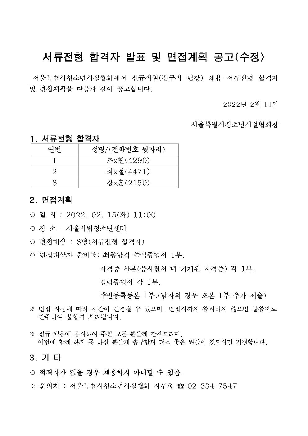| 2022³â Á÷¿ø ä¿ë ¼·ùÀüÇü ÇÕ°ÝÀÚ ¹ßÇ¥ ¹× ¸éÁ¢°èȹ °ø°í(¼öÁ¤) | |||