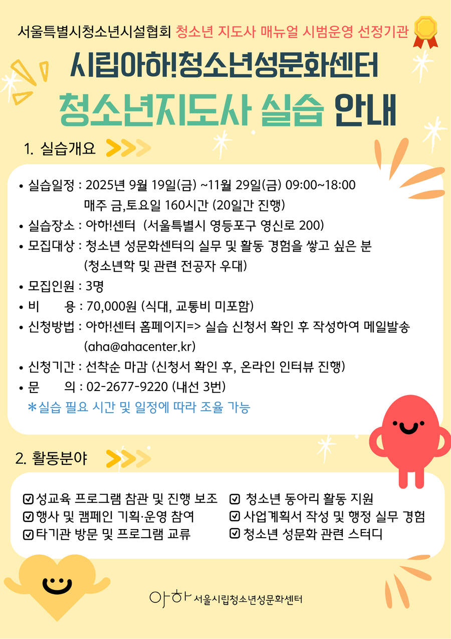 ´Ù. ½Ç½À´ë»ó: û¼Ò³â ¼º¹®È¼¾ÅÍÀÇ ½Ç¹« ¹× Ȱµ¿ °æÇèÀ» ½×°í ½ÍÀº ºÐ