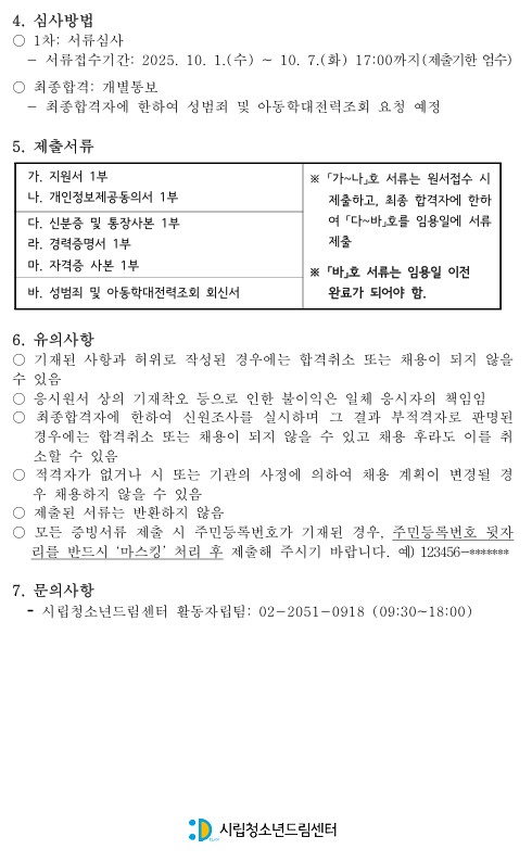 [±¸ÀÎ] ½Ã¸³Ã»¼Ò³âµå¸²¼¾ÅÍ 10¿ù û¼Ò³âÁø·Î¿öÅ©¼ó(ÆÛ½º³Îºê·£µù ÇÁ·Î±×·¥) °»ç ä¿ë °ø°í | |||