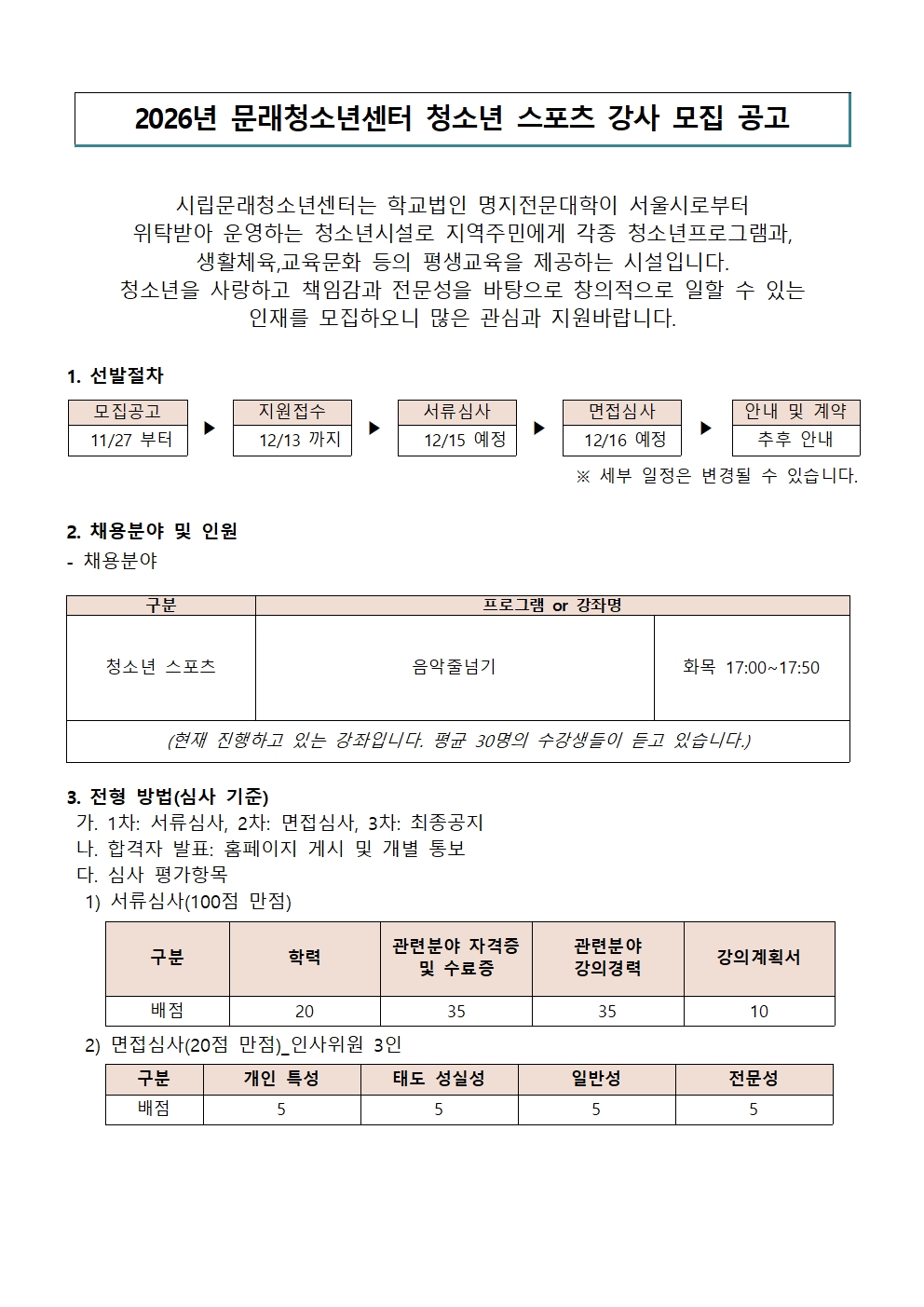 | [±¸ÀÎ] 2026³â ¹®·¡Ã»¼Ò³â¼¾ÅÍ Ã»¼Ò³â ½ºÆ÷Ã÷ °»ç(ȸñÀ½¾ÇÁٳѱâ) ¸ðÁý °ø°í | |||