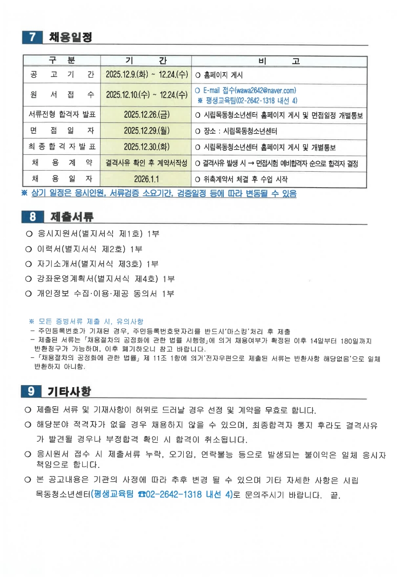 | [±¸ÀÎ] [½Ã¸³¸ñµ¿Ã»¼Ò³â¼¾ÅÍ] 2025³â Æò»ý±³À°ÆÀ Á¤±Ô°Á °»ç °ø°³Ã¤¿ë °ø°í¹®(Àú³á¿ä°¡, ¹ÙµÏ, ¿µÀç°úÇÐ) | |||