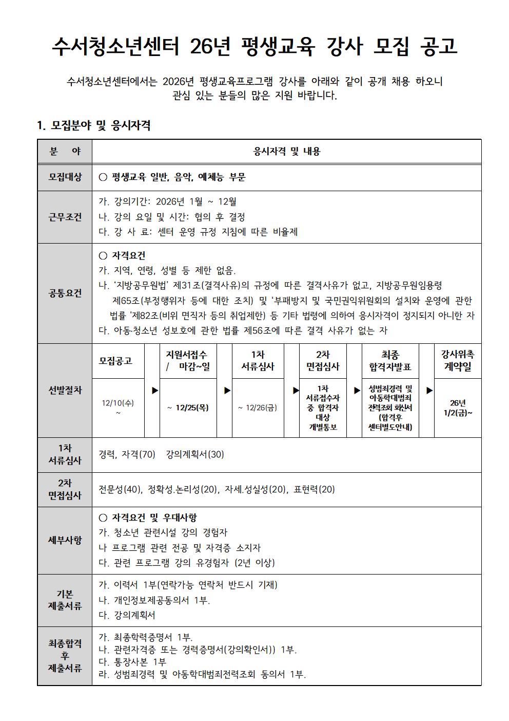 | ÀÛ¼ºÀÚ : ½Ã¸³¼ö¼Ã»¼Ò³â¼¾ÅÍ(suseoedu@daum.net) ÀÛ¼ºÀÏ : 2025-12-10 Á¶È¸¼ö : 291 | |||