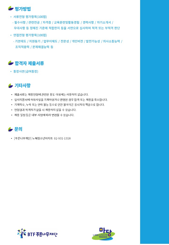 | ´ÙÀ½±Û | ½Ã¸³¸Á¿ìû¼Ò³â¼¾ÅÍ Á÷¿ø(°üÀå,½Ã¼³°ü¸® ÆÀ¿ø) ä¿ë °ø°í |