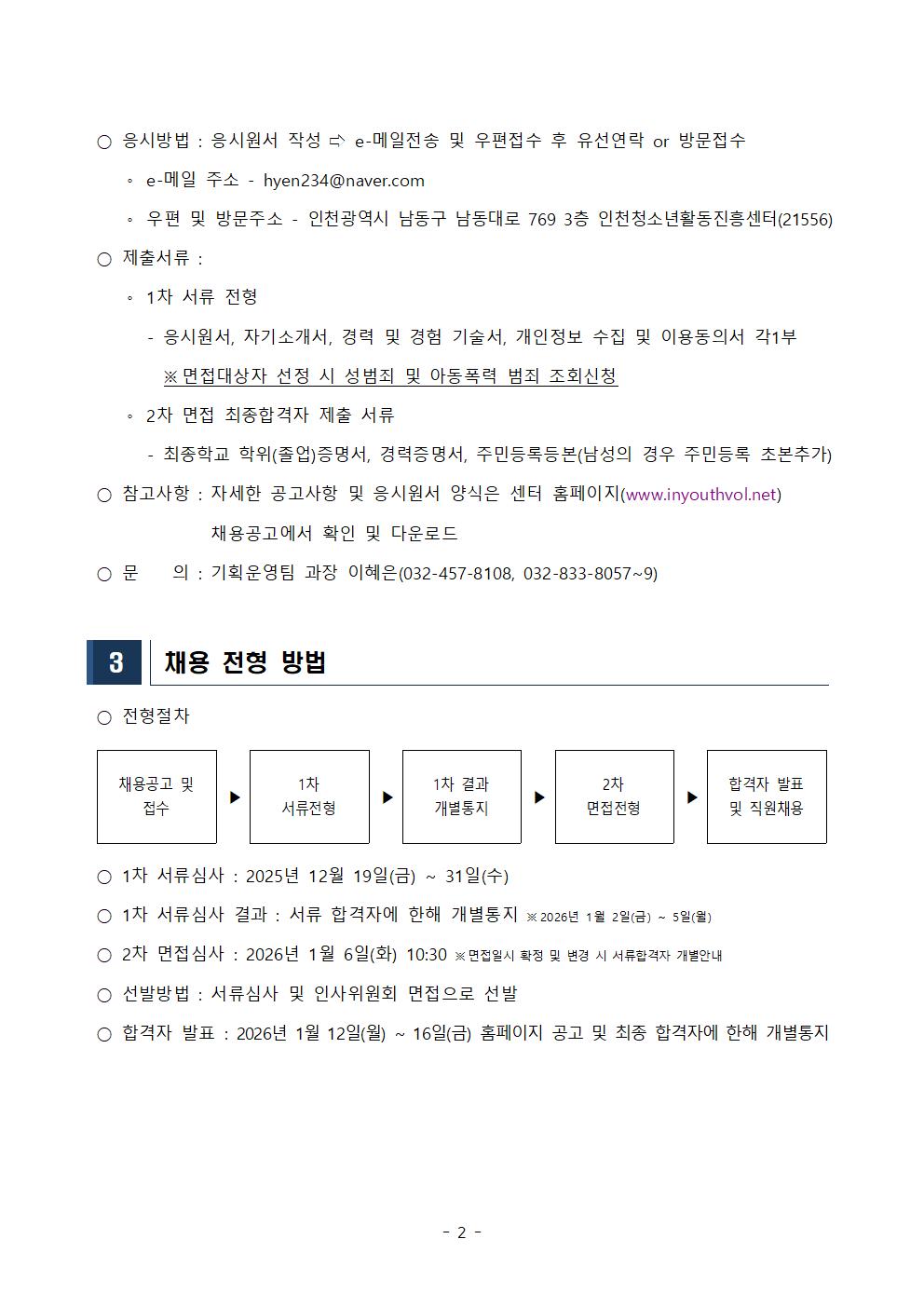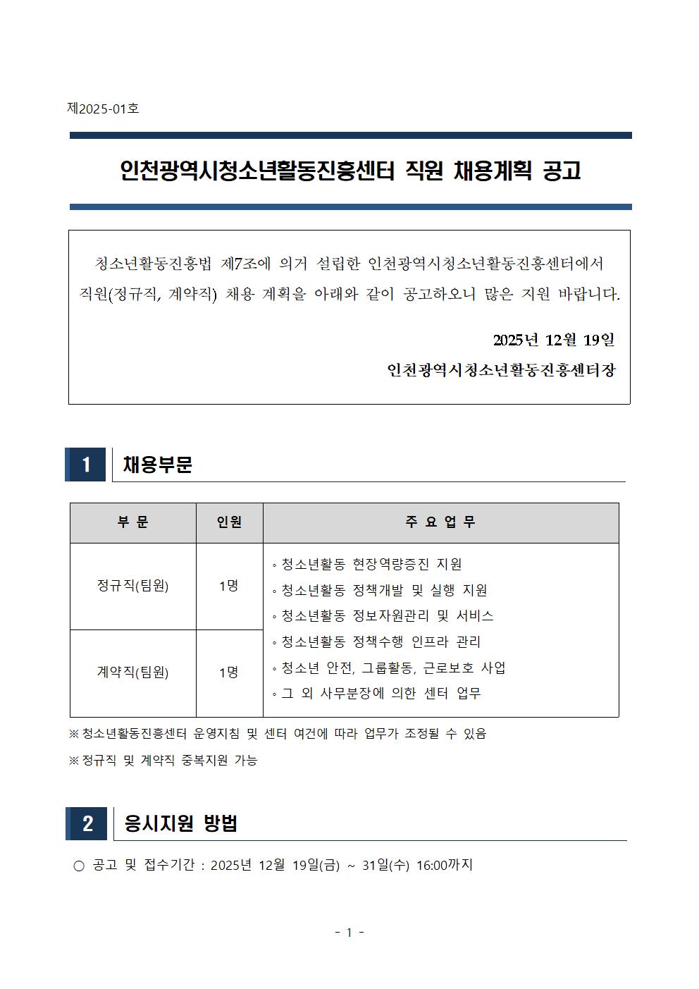 | [±¸ÀÎ] [ÀÎõ±¤¿ª½Ãû¼Ò³âȰµ¿ÁøÈï¼¾ÅÍ] Á÷¿ø(Á¤±ÔÁ÷, °è¾àÁ÷) ä¿ë °ø°í | |||