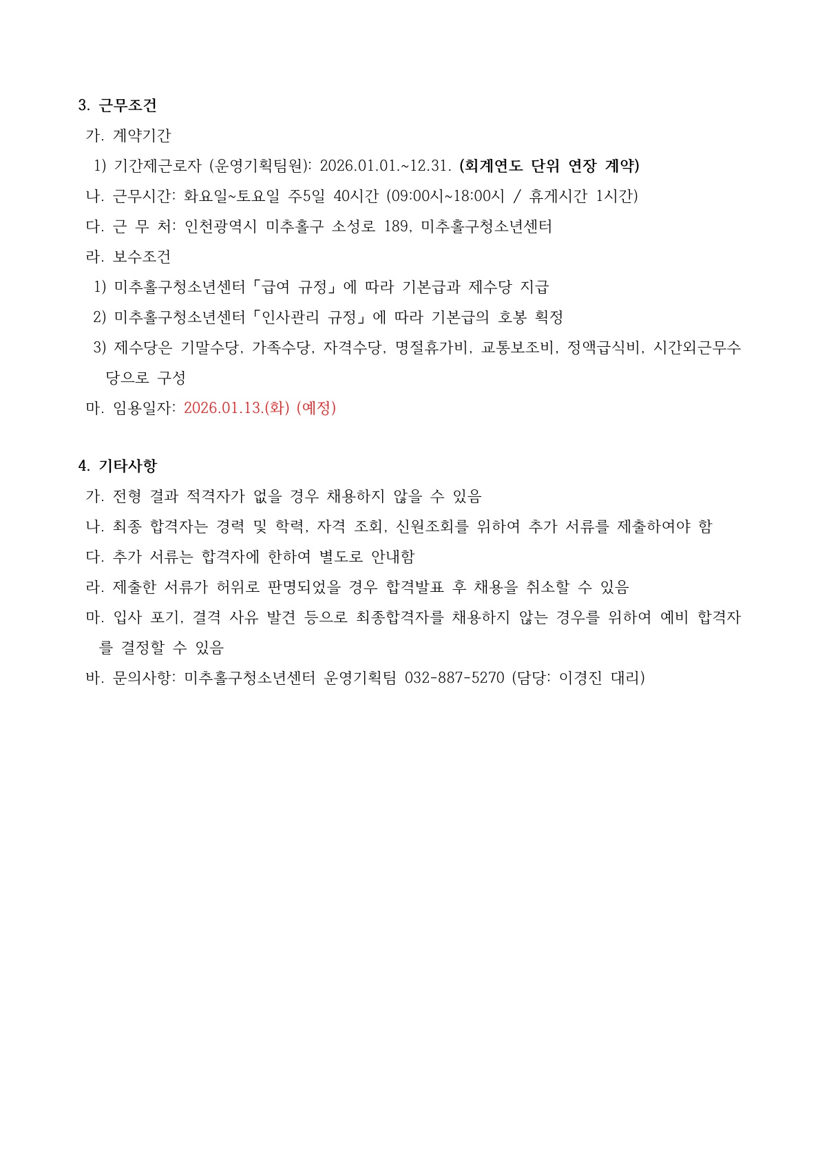 | [±¸ÀÎ] 2026-2Â÷ ¹ÌÃßȦ±¸Ã»¼Ò³â¼¾ÅÍ Á÷¿ø ä¿ë °ø°í £Û±ä±Þ£Ý | |||