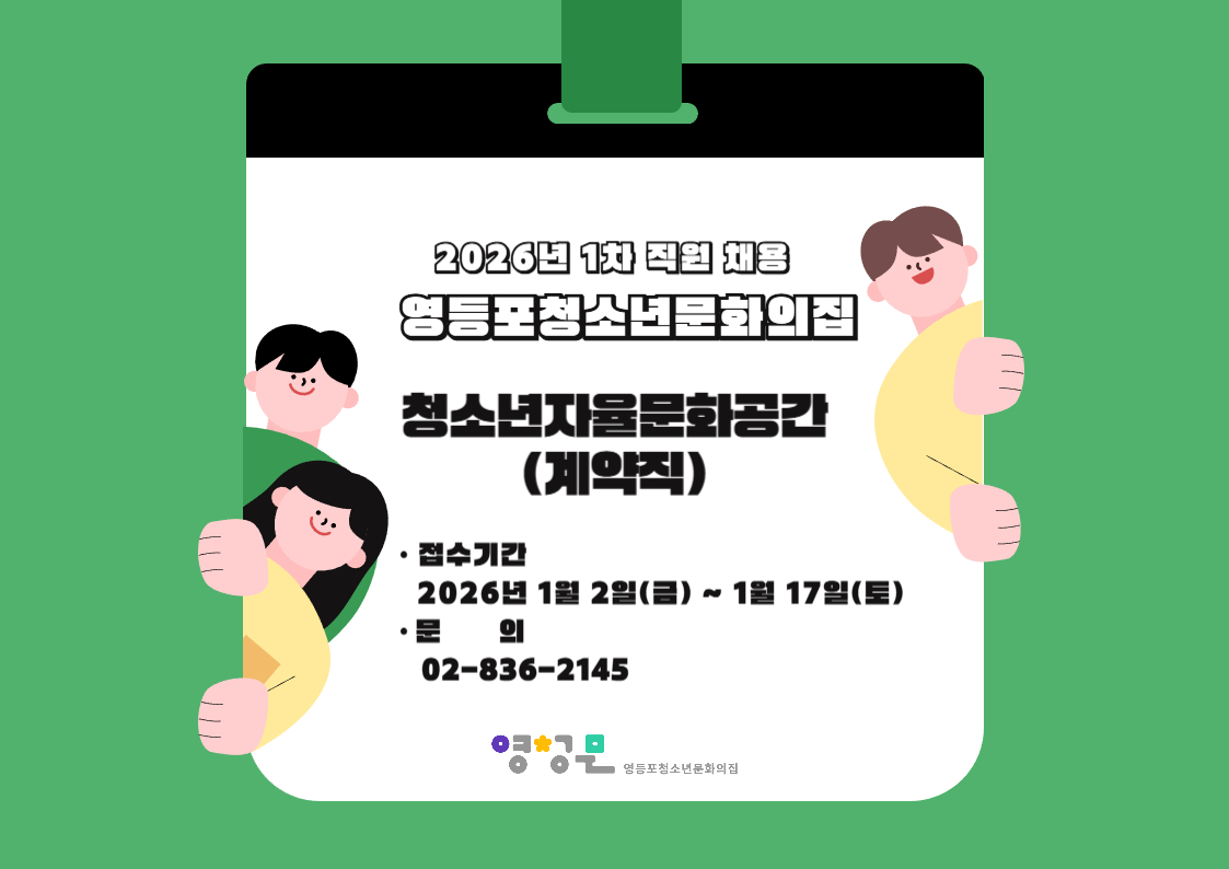 | [±¸ÀÎ] ¿µµîÆ÷û¼Ò³â¹®ÈÀÇÁý 2026³â 1Â÷ Á÷¿ø ä¿ë°ø°í(°è¾àÁ÷_û¼Ò³âÀÚÀ²¹®È°ø°£) | |||