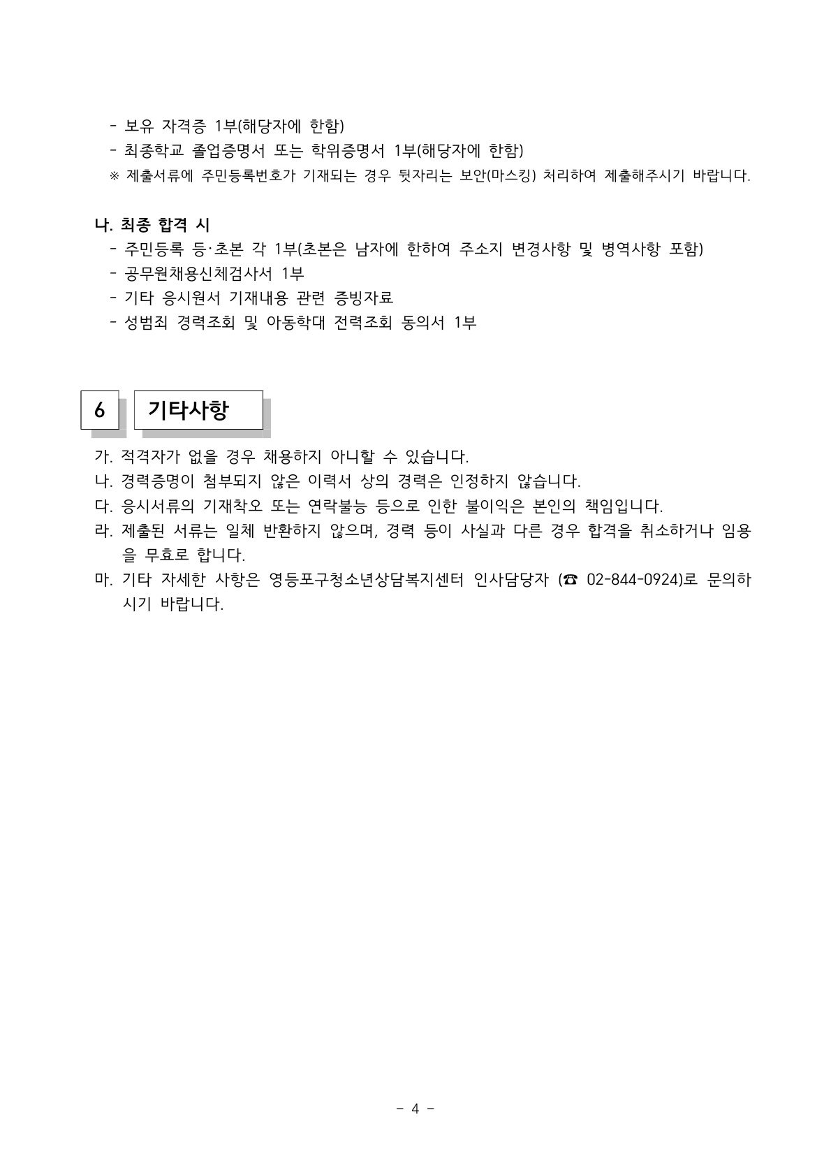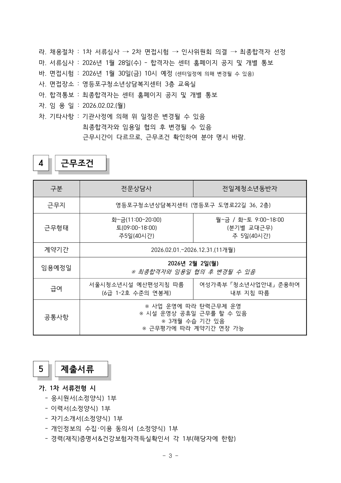 | [±¸ÀÎ] 2026³â ¿µµîÆ÷±¸Ã»¼Ò³â»ó´ãº¹Áö¼¾ÅÍ 1Â÷ Á÷¿øÃ¤¿ë °ø°í(¼¿ï½ÃÀü¹®»ó´ã»ç, ÀüÀÏÁ¦Ã»¼Ò³âµ¿¹ÝÀÚ) | |||