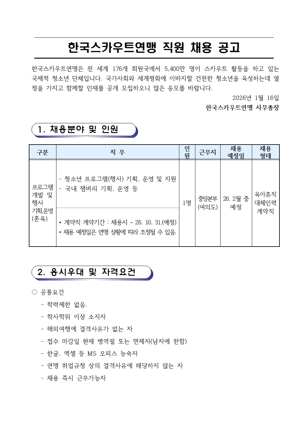 | Çѱ¹½ºÄ«¿ìÆ®¿¬¸Í °è¾àÁ÷¿ø ä¿ë °ø°í [ÈÆÀ°) | |||