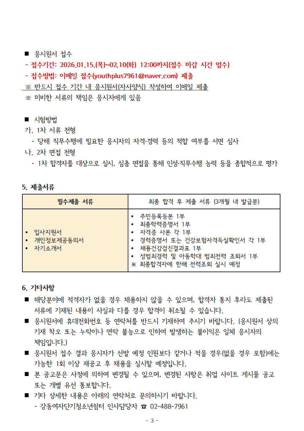 | [±¸ÀÎ] °µ¿¿©Àڴܱâû¼Ò³â½°ÅÍ 2026³â Á÷¿ø ä¿ë (º¸È£»ó´ã¿ø/Á¤±ÔÁ÷) | |||