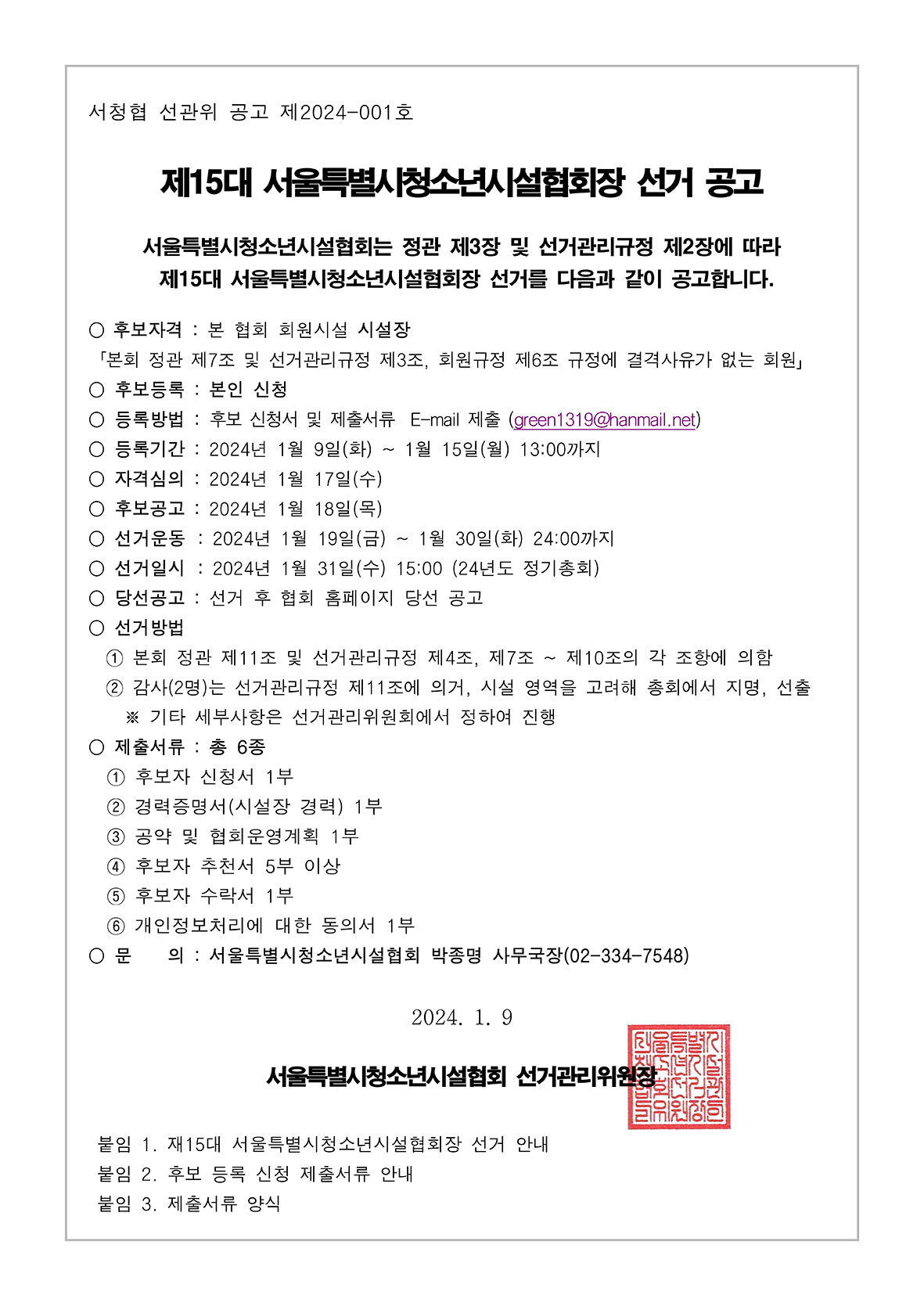 | ÆÄÀÏ÷ºÎ : Á¦15´ë ¼¿ï½Ãû¼Ò³â½Ã¼³ÇùȸÀå ¼±°Å °ø°í¹®.pdf Á¦15´ë ¼¿ï½Ãû¼Ò³â½Ã¼³ÇùȸÀå È帵î·Ï Á¦Ãâ¼·ù ¼½Ä.hwp | |||