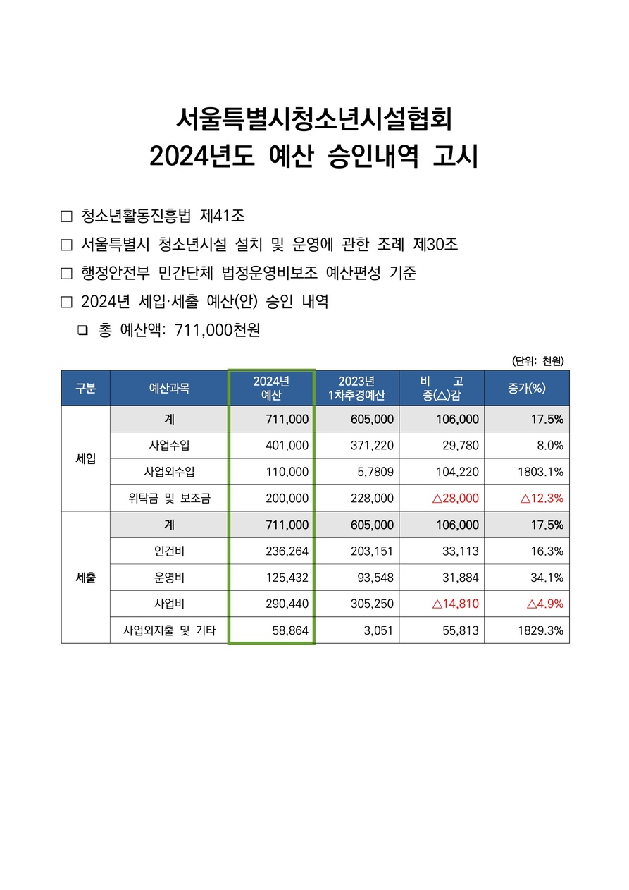 | ¼¿ïƯº°½Ãû¼Ò³â½Ã¼³Çùȸ 2024³â ¿¹»ê ½ÂÀÎ °í½Ã | |||