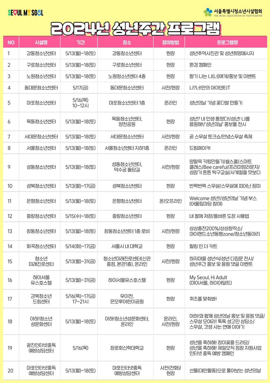 | [°øÁö] 2024³â ¼¿ï½Ã ¼º³âÀdz¯ ±â³äÇà»ç ¹× ¼º³âÁÖ°£ ÇÁ·Î±×·¥ ¾È³» | |||