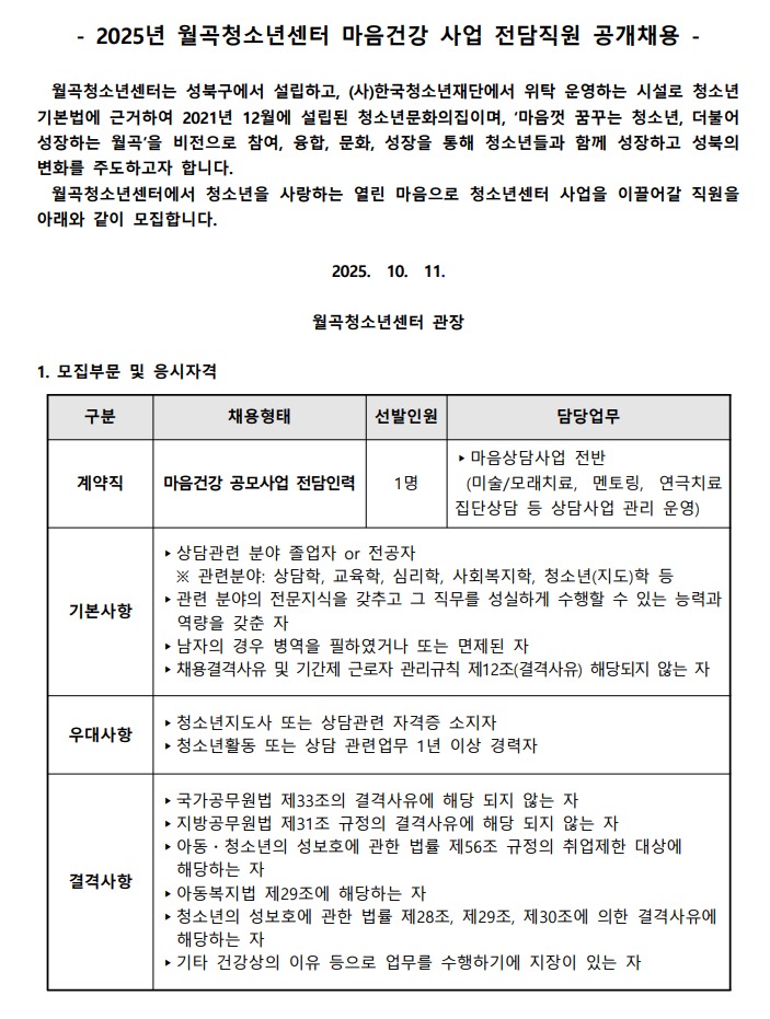 [±¸ÀÎ] 2025³â Á¦3Â÷ ¿ù°îû¼Ò³â¼¾ÅÍ Á÷¿ø ä¿ë °ø°í(¸¶À½°Ç° °ø¸ð»ç¾÷ Àü´ãÀηÂ_°è¾àÁ÷) | |||