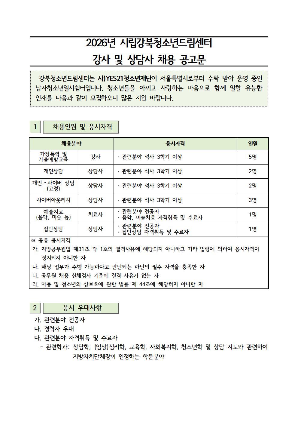 | 2026³â ½Ã¸³°ºÏû¼Ò³âµå¸²¼¾ÅÍ °»ç ¹× »ó´ã»ç ä¿ë °ø°í¹® | |||
