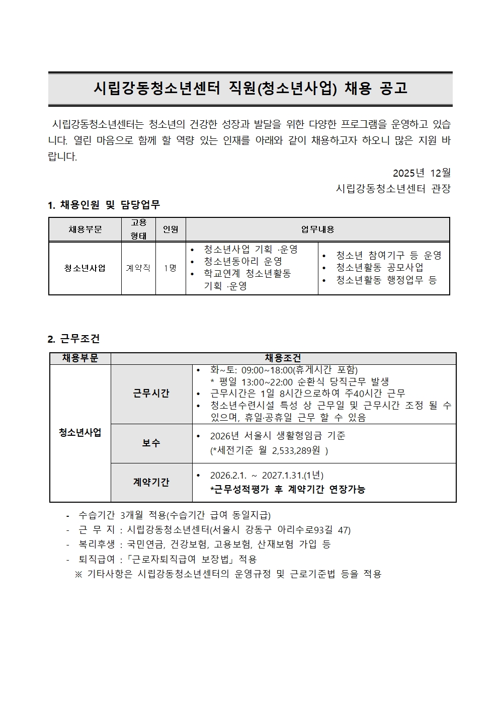 | ´ÙÀ½±Û | 2026³â ½Ã¸³°ºÏû¼Ò³âµå¸²¼¾ÅÍ °»ç ¹× »ó´ã»ç ä¿ë °ø°í¹® |
