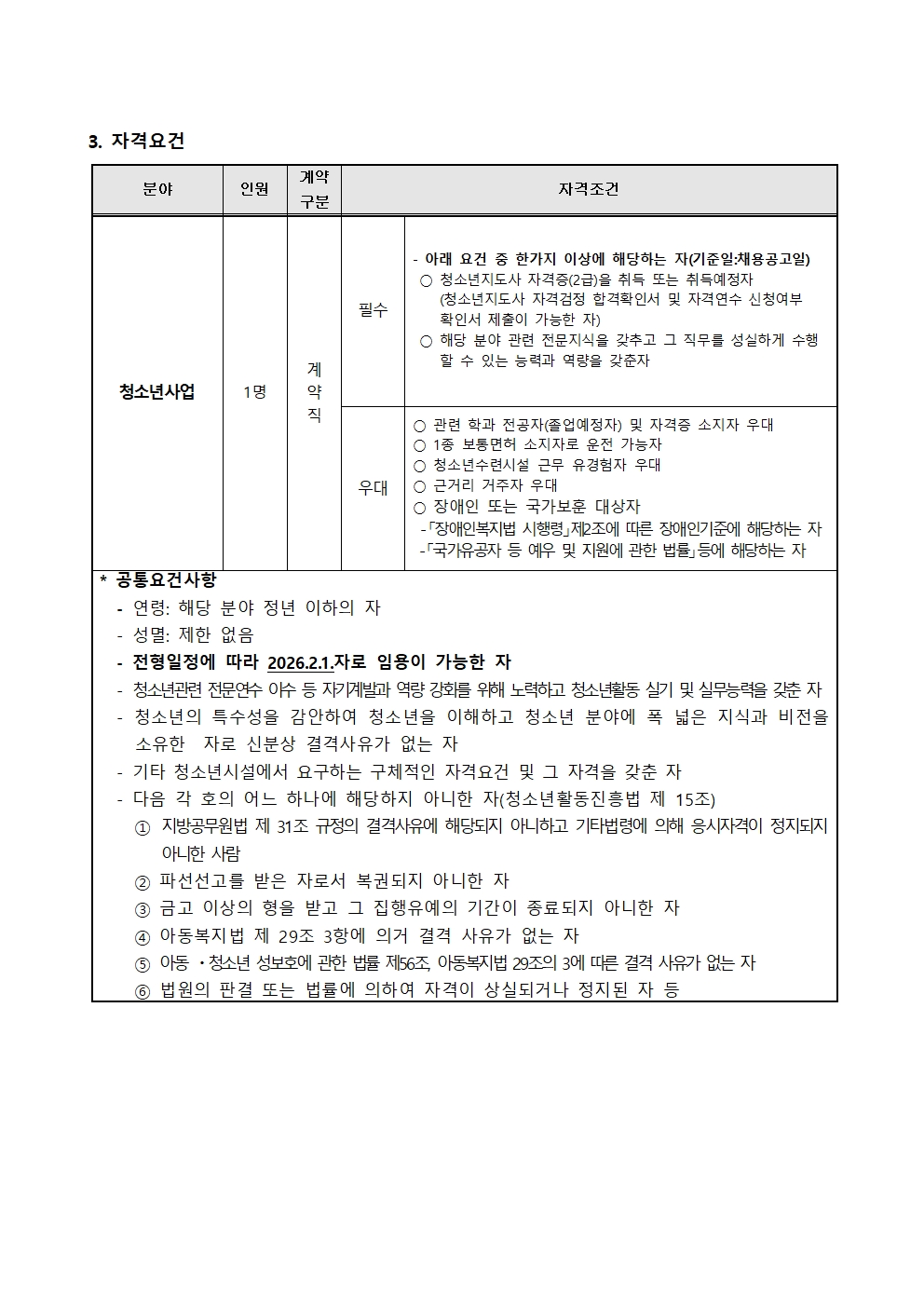 | [±¸ÀÎ] ½Ã¸³°µ¿Ã»¼Ò³â¼¾ÅÍ Á÷¿ø(û¼Ò³â»ç¾÷ºÐ¾ß) Á÷¿øÃ¤¿ë °ø°í | |||