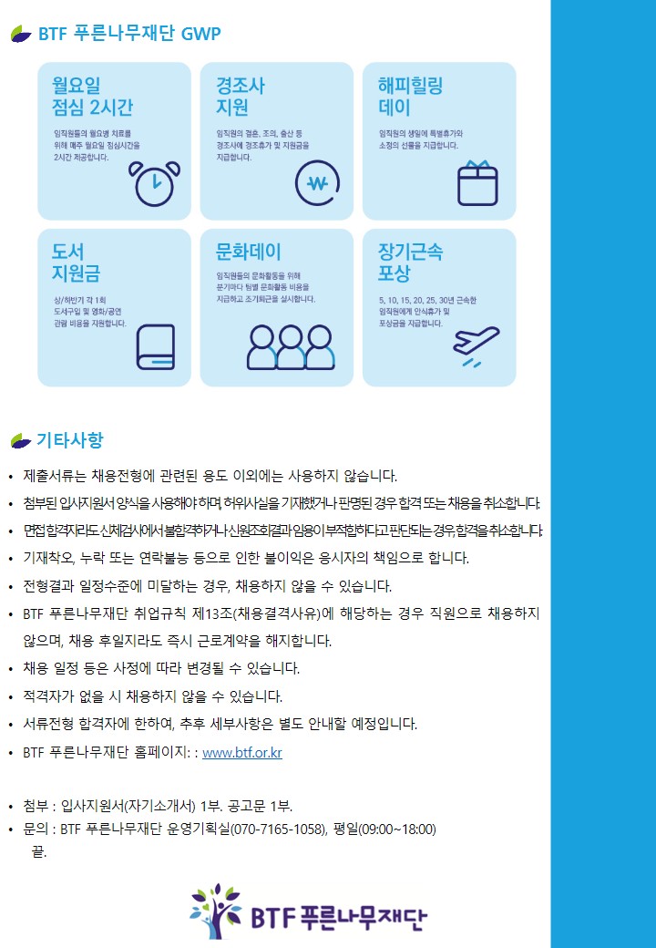 | ÆÄÀÏ÷ºÎ : BTF Ǫ¸¥³ª¹«Àç´Ü »ó´ãº»ºÎ À§µåÀ§¼¾ÅÍ Ã¤¿ë °ø°í.pdf [¾ç½Ä] BTFǪ¸¥³ª¹«Àç´Ü ÀÔ»çÁö¿ø¼ ¹× ÀÚ±â¼Ò°³¼.hwp | |||