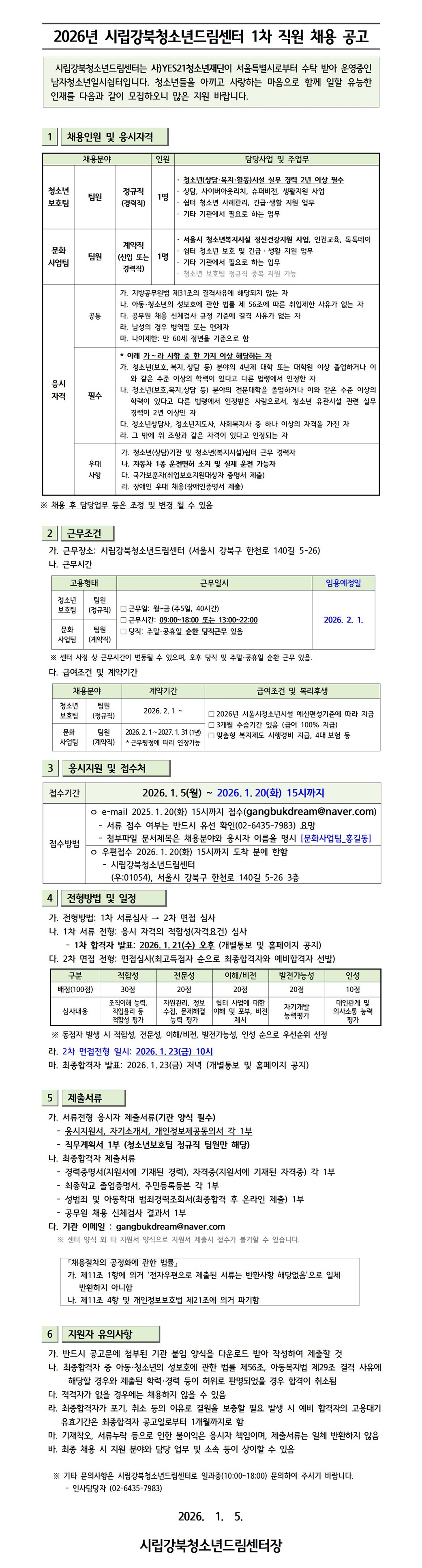 | ÆÄÀÏ÷ºÎ : 2026³âµµ ½Ã¸³°ºÏû¼Ò³âµå¸²¼¾ÅÍ 1Â÷ Á÷¿ø ä¿ë°ø°í¹®.hwp ÀÀ½ÃÁö¿ø¼+ÀÚ±â¼Ò°³¼+°³ÀÎÁ¤º¸µ¿ÀǼ(26³â).hwp Á÷¹«¼öÇà°èȹ¼(û¼Ò³âº¸È£ÆÀ Á¤±ÔÁ÷).hwp | |||