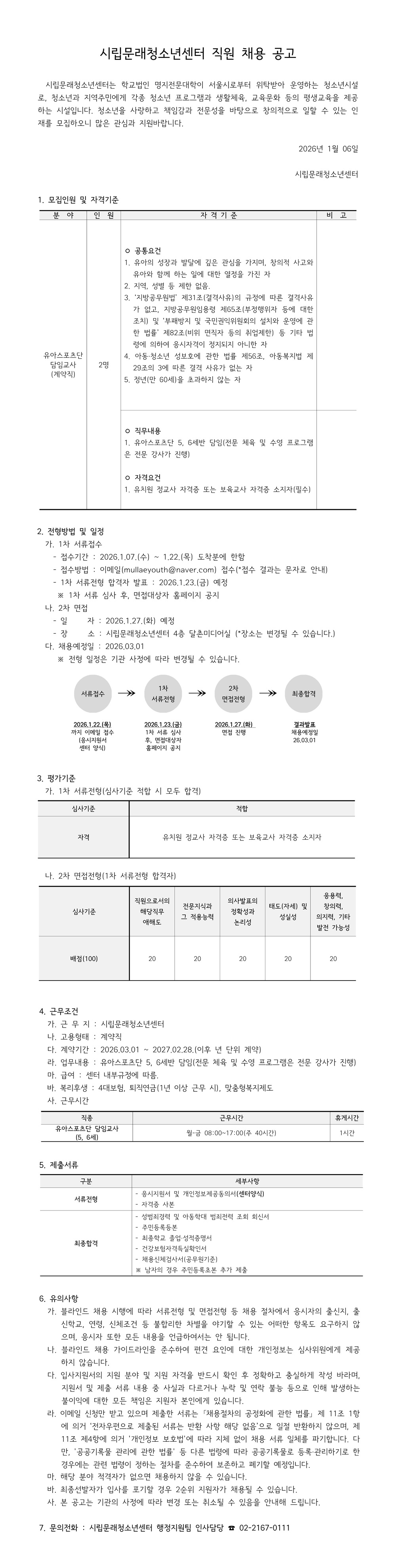 | [±¸ÀÎ] ½Ã¸³¹®·¡Ã»¼Ò³â¼¾ÅÍ Á÷¿ø ä¿ë °ø°í(À¯¾Æ½ºÆ÷Ã÷´Ü 5, 6¼¼´ãÀÓ±³»ç(°è¾àÁ÷)) | |||