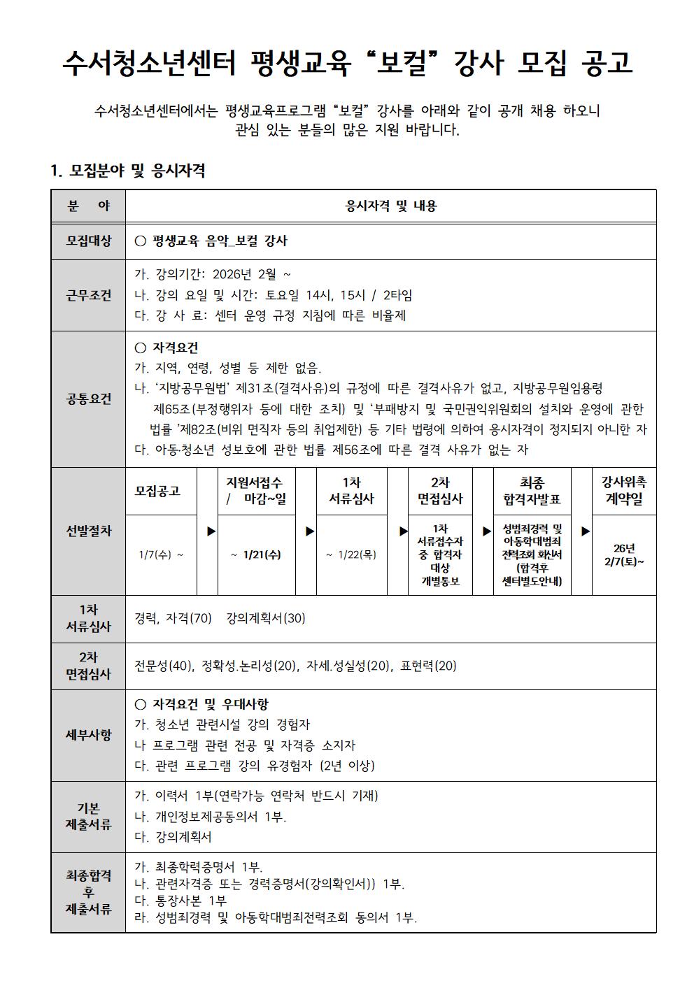 | ÀÛ¼ºÀÚ : ½Ã¸³¼ö¼Ã»¼Ò³â¼¾ÅÍ(suseoedu@daum.net) ÀÛ¼ºÀÏ : 2026-01-07 Á¶È¸¼ö : 101 | |||