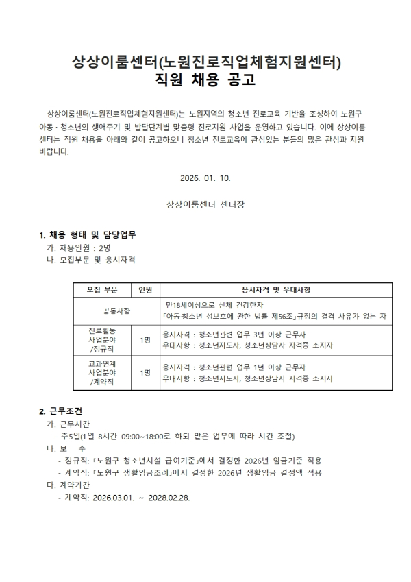 | ÆÄÀÏ÷ºÎ : 2. 2026 »ó»óÀÌ·ë¼¾ÅÍ Á÷¿ø ä¿ë °ø°í001.jpg 2. 2026 »ó»óÀÌ·ë¼¾ÅÍ Á÷¿ø ä¿ë °ø°í002.jpg 2. 2026 »ó»óÀÌ·ë¼¾ÅÍ Á÷¿ø ä¿ë °ø°í003.jpg 3. 2026 »ó»óÀÌ·ë¼¾ÅÍ ÀÀ½Ã¿ø¼.hwp 3. 2026 »ó»óÀÌ·ë¼¾ÅÍ ÀÀ½Ã¿ø¼.hwp | ||