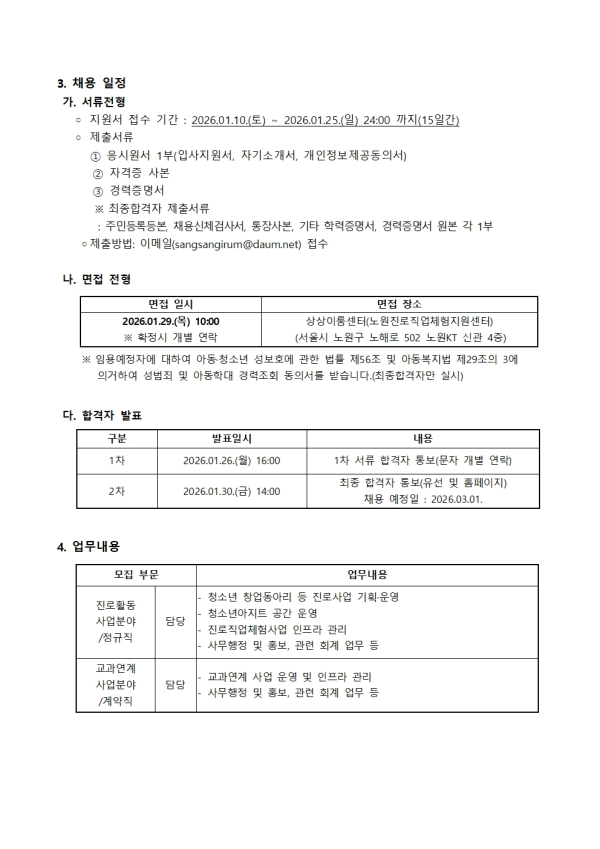 | ÀÌÀü±Û | (¼öÁ¤)±Ãµ¿Ã»¼Ò³â¹®ÈÀÇÁý Á÷¿øÃ¤¿ë °ø°í(Á¤±ÔÁ÷/û¼Ò³â»ç¾÷ÆÀ ´ã´ç) |