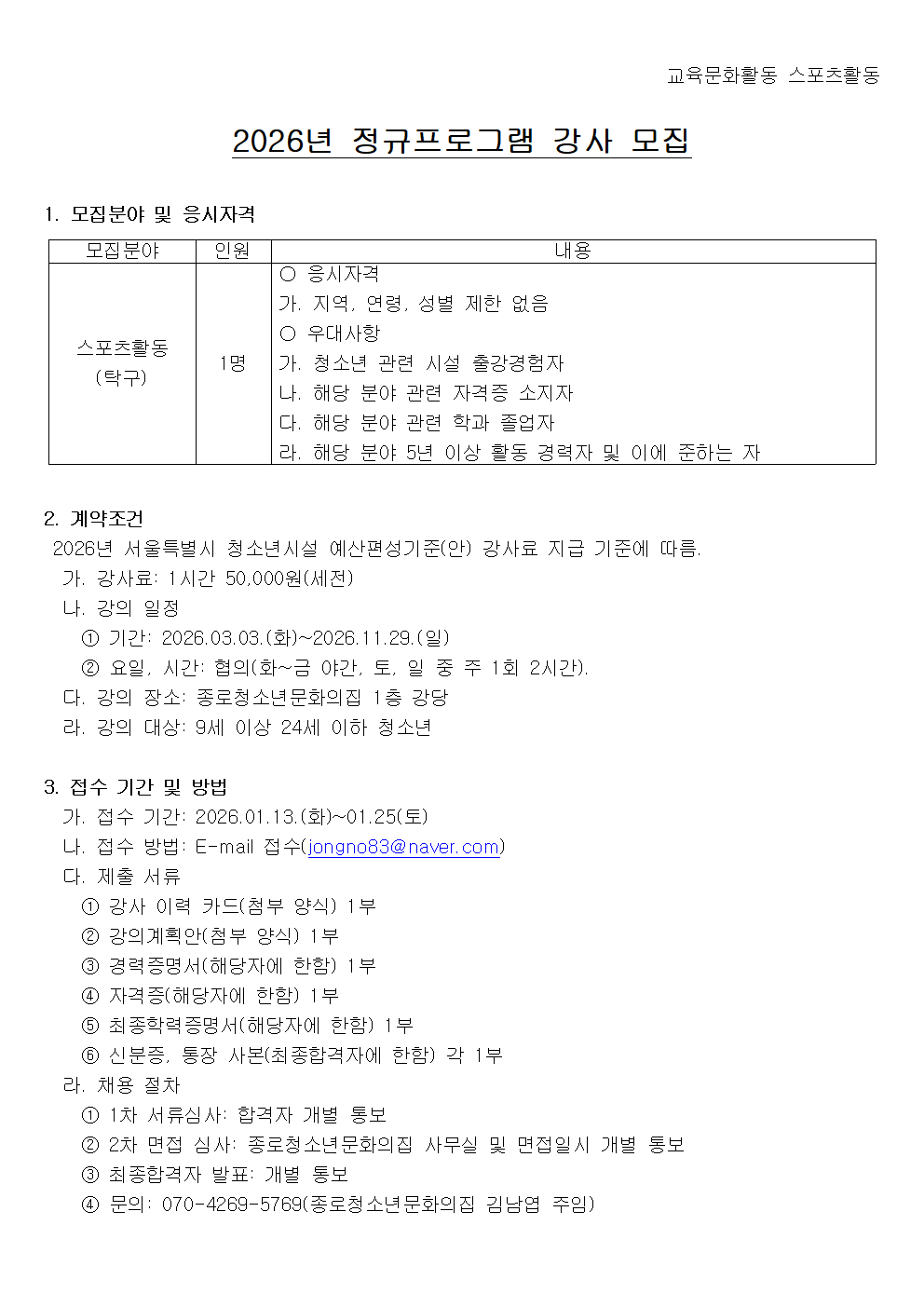 | ÆÄÀÏ÷ºÎ : 0. 2026³â ±³À°¹®ÈȰµ¿ ½ºÆ÷Ã÷Ȱµ¿ °»ç ¸ðÁý °ø°í.hwpx 1. 2026³â ½ºÆ÷Ã÷Ȱµ¿ °»ç ÀÌ·Â Ä«µå ¾ç½Ä.hwpx 2. 2026³â ½ºÆ÷Ã÷Ȱµ¿ °Àǰèȹ(¾È) ¾ç½Ä.hwpx | |||